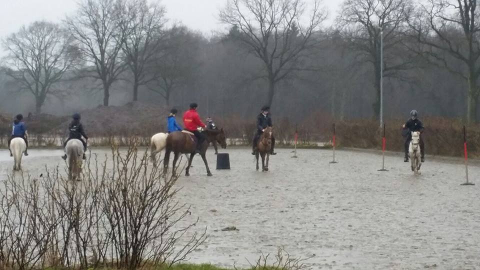 Auf dem Programm standen an diesem Tag zwei Trainingseinheiten mit Pony und eine Sporteinheit. Trotz des sehr schlechten Wetters waren die Mädels alle so motiviert, dass sie auch bei dem Regen ihre 5 km gelaufen wären. Der Einsatz war schon bewundernswert! Die Sporteinheit haben wir dann kurzfristig in die zufälligerweise freie Reithalle verlegt, sind dort 20 Minuten gelaufen und haben anschließend noch Kraftübungen gemacht. Darauf folgte dann die erste Trainingseinheit mit Pony – ebenfalls in der Reithalle. Die Reiterinnen zeigten – trotz sich bereits ankündigenden Muskelkaters – alle eine gute Leistung. Nach einer gemeinsamen Mittagspause, bei der sich alle gestärkt hatten, sagten wir dem Regen den Kampf an und es ging zur nächsten Trainingseinheit nach draußen auf den Sandplatz. Auch hier konnte man wieder eine große Motivation bei den Reitern erkennen, die trotz des wirklich schlechten Wetters großen Einsatz zeigten, um sich bestmöglich zu präsentieren.
