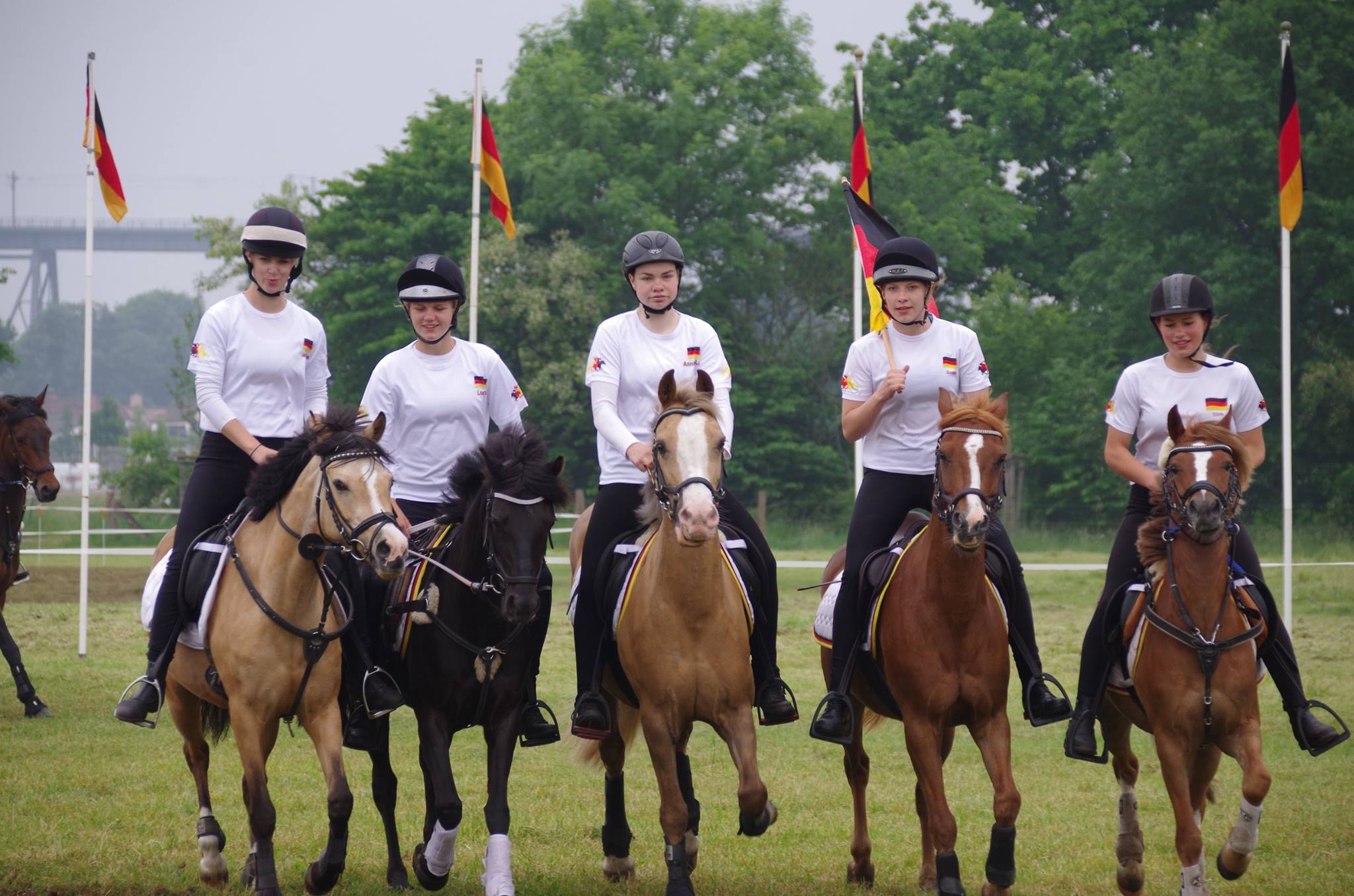 Den darauffolgenden Pfingstmontag verbrachten wir dann auf dem Stutenhof Waterdiek in Tökendorf. Das Wetter zeigte sich von seiner besten Seite, sodass wir in zwei Trainingseinheiten die Spiele nachholten, die wir am Sonntag hätten spielen sollen und Reihenfolgen verbesserten, die sich als nicht sinnvoll herausgestellt hatten. Auch unsere 6. Reiterin Lina Will war dabei und konnte sowohl das Mannschaftstraining bereichern, als auch nebenbei für die bevorstehende EM Einzelmeisterschaft trainieren.